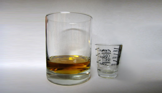A little research quickly revealed that there is no standard unit of volume for whisky. To a Scotsman, a ‘wee dram’ is less a matter of careful calculation, and more a matter of tipping however much you like into your glass. Luckily, after a little personal experimentation and the information at this helpful site about Units of Measure, I settled on approximately 2 fluid ounces as a typical “glass” of whisky. Note that the dram or drachm is equal to 1/8 of a fluid ounce, or about a teaspoon. No Scotsman is likely to be satisfied with such a measure.